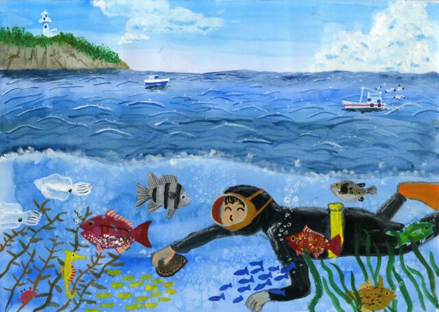 三重県教育委員会教育長賞 「海女さんと海の生き物たち」