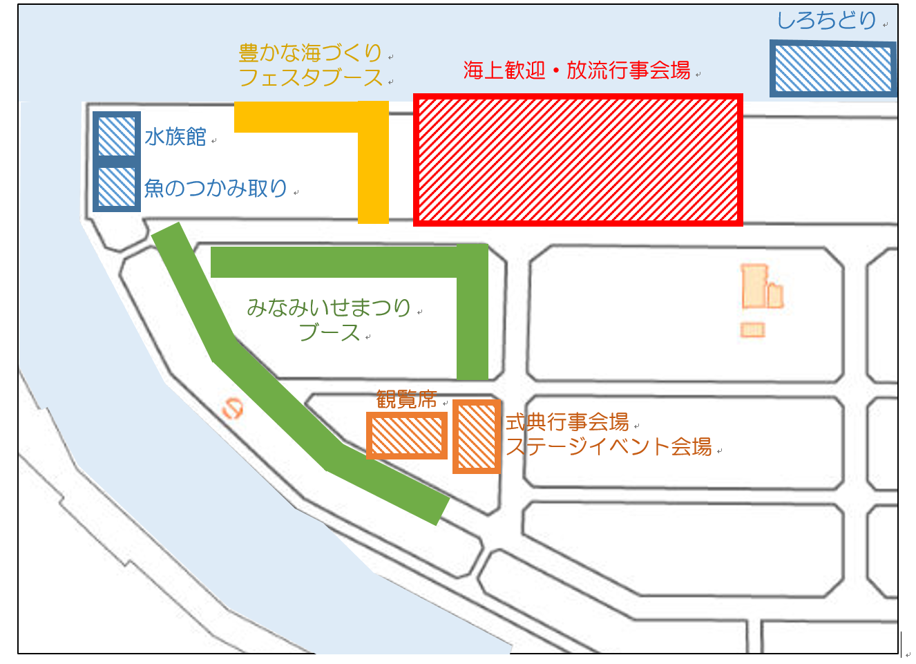 | 海上歓迎・放流行事(10:55~11:30) 海上歓迎パレード(漁法紹介及び漁船パレード) 記念放流(稚魚放流) |