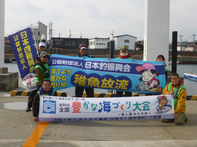 令和7年1月15日に公益財団法人日本釣り振興会三重支部の皆さんと「第32回大会記念リレー放流」を行いました!