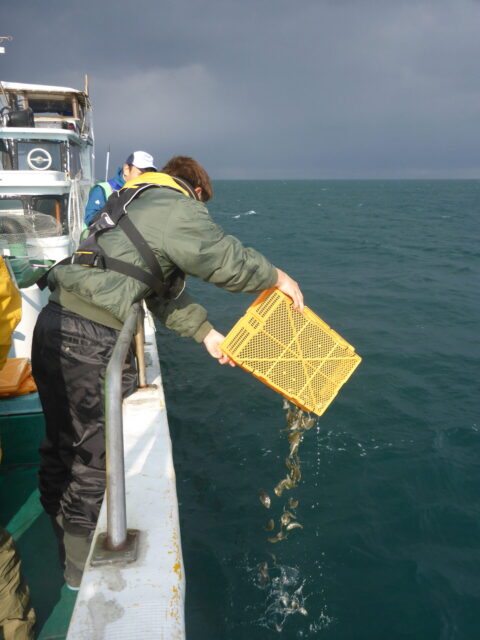 地元遊漁船等のご協力も頂き、たくさんの稚魚を放流してくれました!
