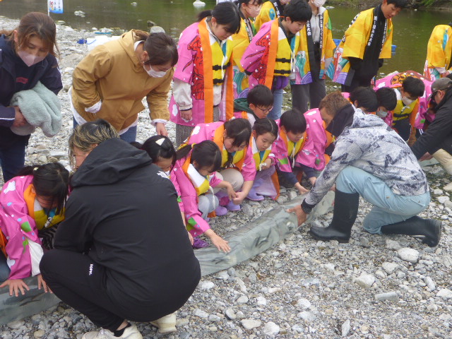 令和7年4月1日に大紀町の地元学童児童の皆さんと「第37回大会記念リレー放流」を行いました!