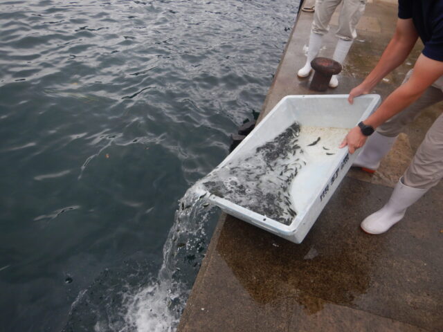 資源の増加と限りある資源を次世代につなぐためたくさんのトラフグを放流してくれました!